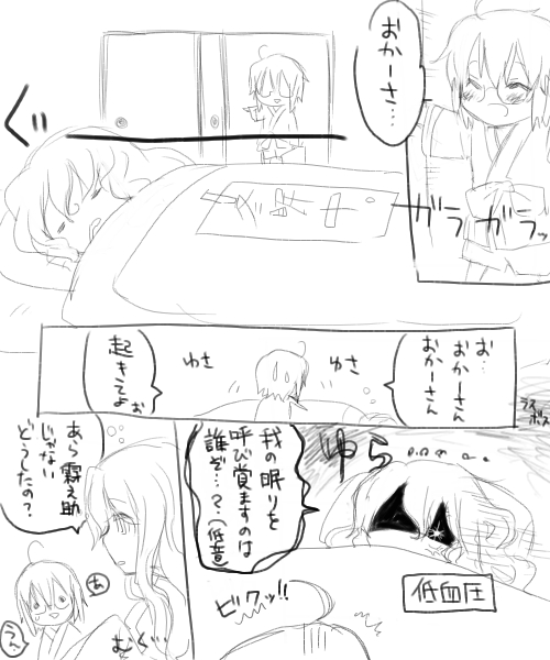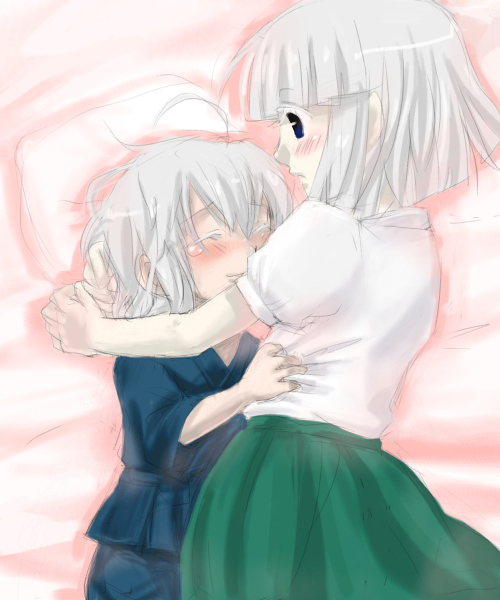 お昼寝中に怖い夢を見た霖之助に添い寝してあげる妖夢お姉ちゃん。