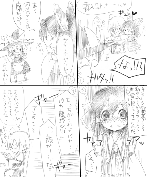 >霊霖漫画のネタは魔理沙に嫉妬して香霖に抱きつく霊夢なんてどうでしょう?