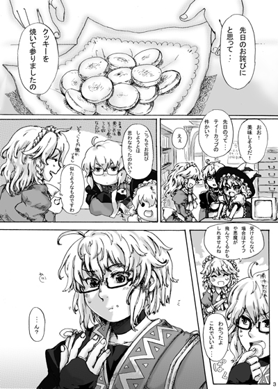 咲夜さんがお菓子をもってきたり霊魔理が霖をいじめたりする本です。