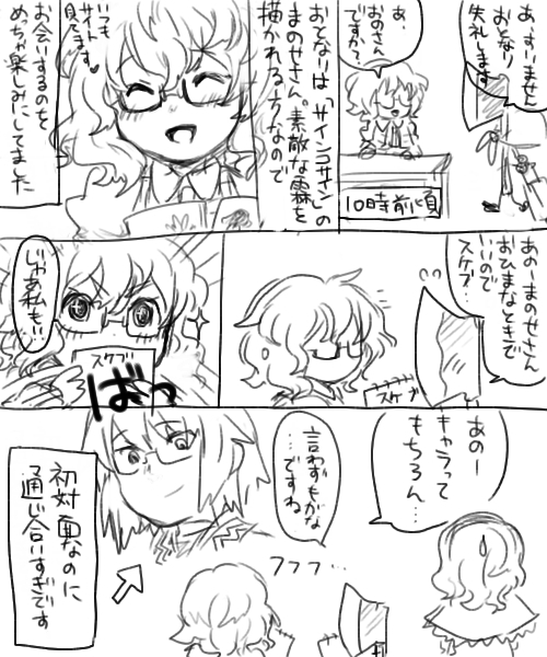 >博多東方祭お疲れ様でした!スケブと本をニヤニヤしながら旅の疲れを癒しております…w隣で挙動不審ですいませんでした(;´Д`) 茉乃瀬